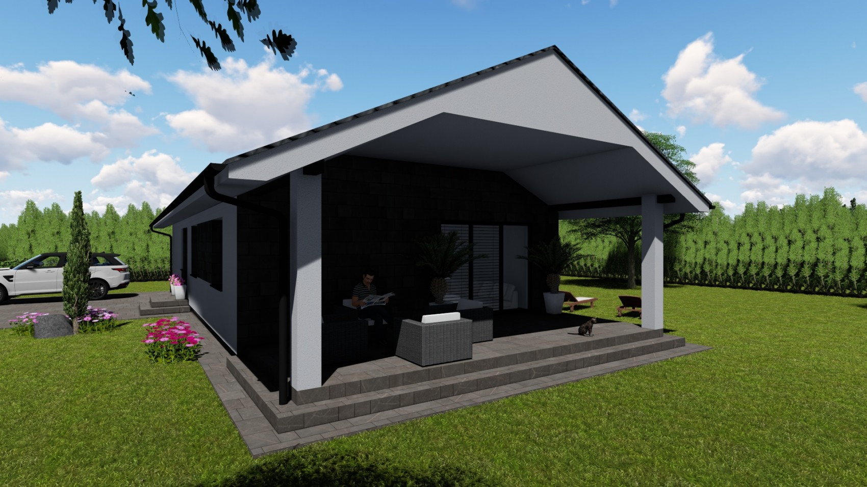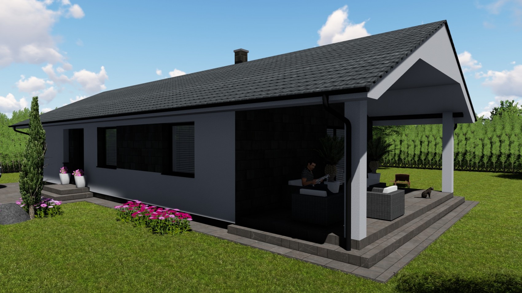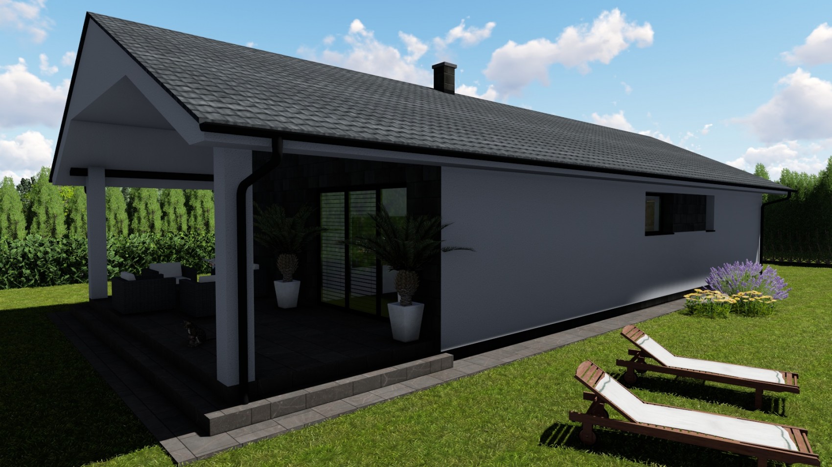 Bungalov Astra 4 je projekt domu vhodný pre 4-5 člennú rodinu, ktorá uprednostňuje spojenie praktického života v kombinácii s prírodným štýlom. Jednoduchosť a elegancia tohto bungalovu mu zaručuje nadčasový štýl, ktorý si ihneď obľúbite. Celková úžitková plocha projektu domu je príjemných 95 m2.