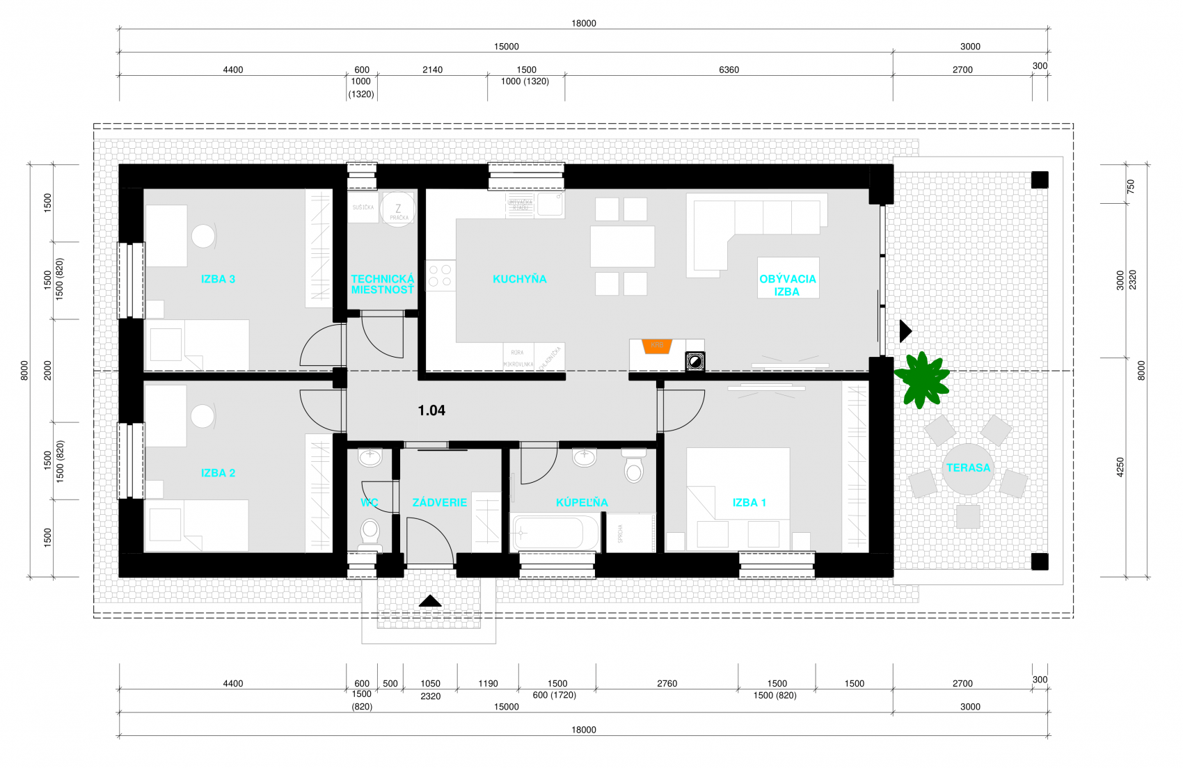 Bezplatne a bez zmeny výslednej ceny je v projekte možné zo strany klienta robiť malé úpravy v dispozičnom riešení interiéru stavby (miestnosti, posúvať priečky ...). zrkadlovo otáčať stavbu. zmeniť umiestnenie terasovej plochy = v rámci projekčných možnosti