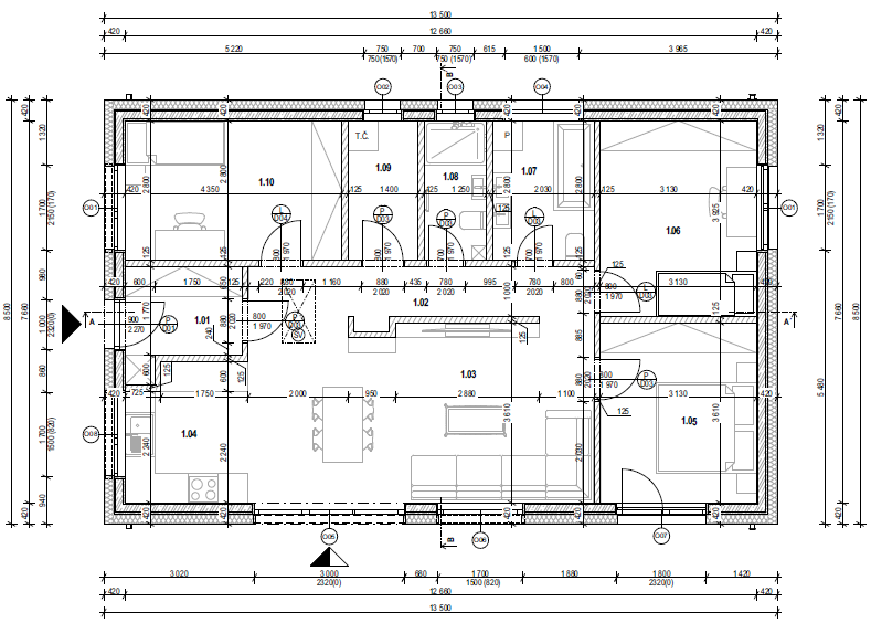 Bezplatne a bez zmeny výslednej ceny je v projekte možné zo strany klienta robiť malé úpravy v dispozičnom riešení interiéru stavby (miestnosti, posúvať priečky ...). zrkadlovo otáčať stavbu. zmeniť umiestnenie terasovej plochy = v rámci projekčných možnosti