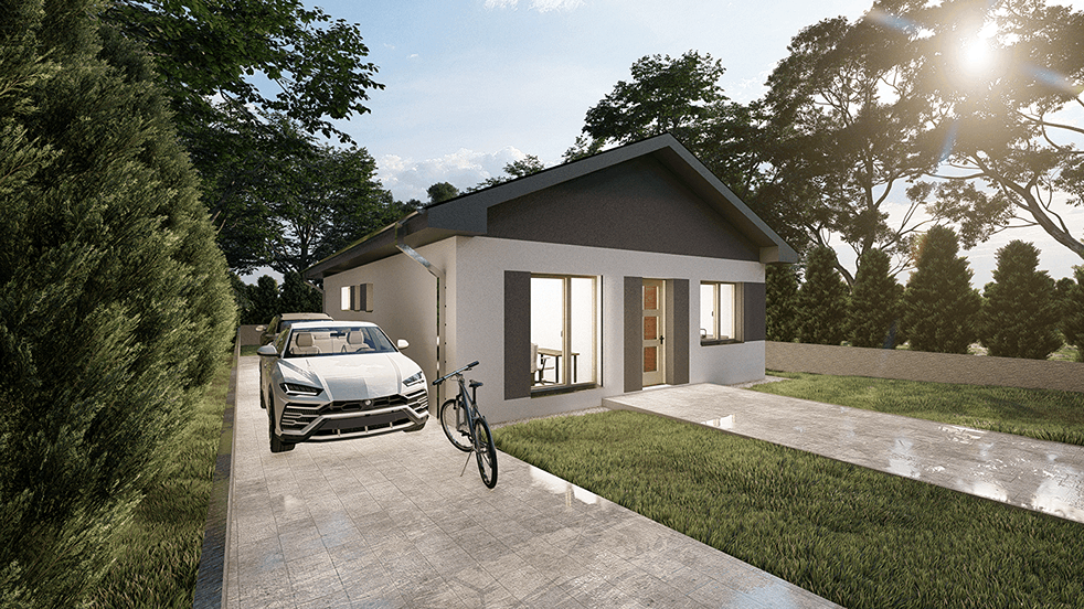 Bungalov Astra 6 je dom strednej veľkostnej kategórie. Svojimi vnútornými priestormi uspokojí nároky na bývanie 4-5 člennej rodiny.