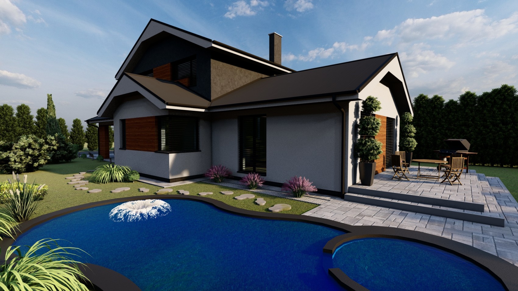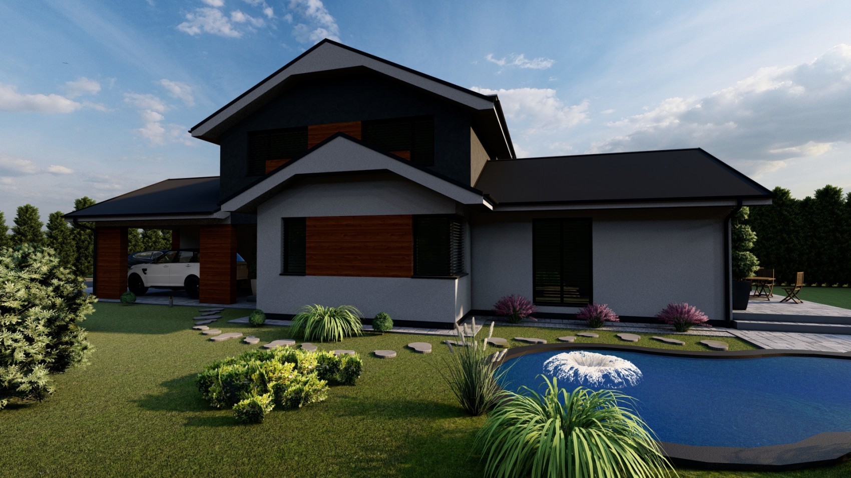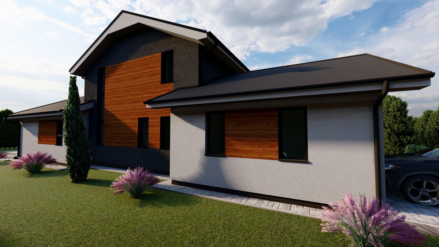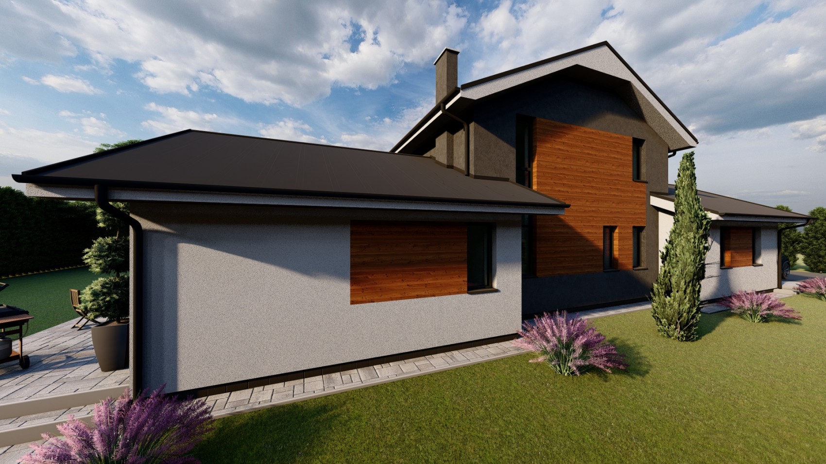 Rodinný dom GRAND 10 je návrhom moderného domu s úžitkovou plochou 148 m2 pre 4-5 rodinu, ktorá uprednostňuje spojenie praktického života v kombinácii s prírodným štýlom.