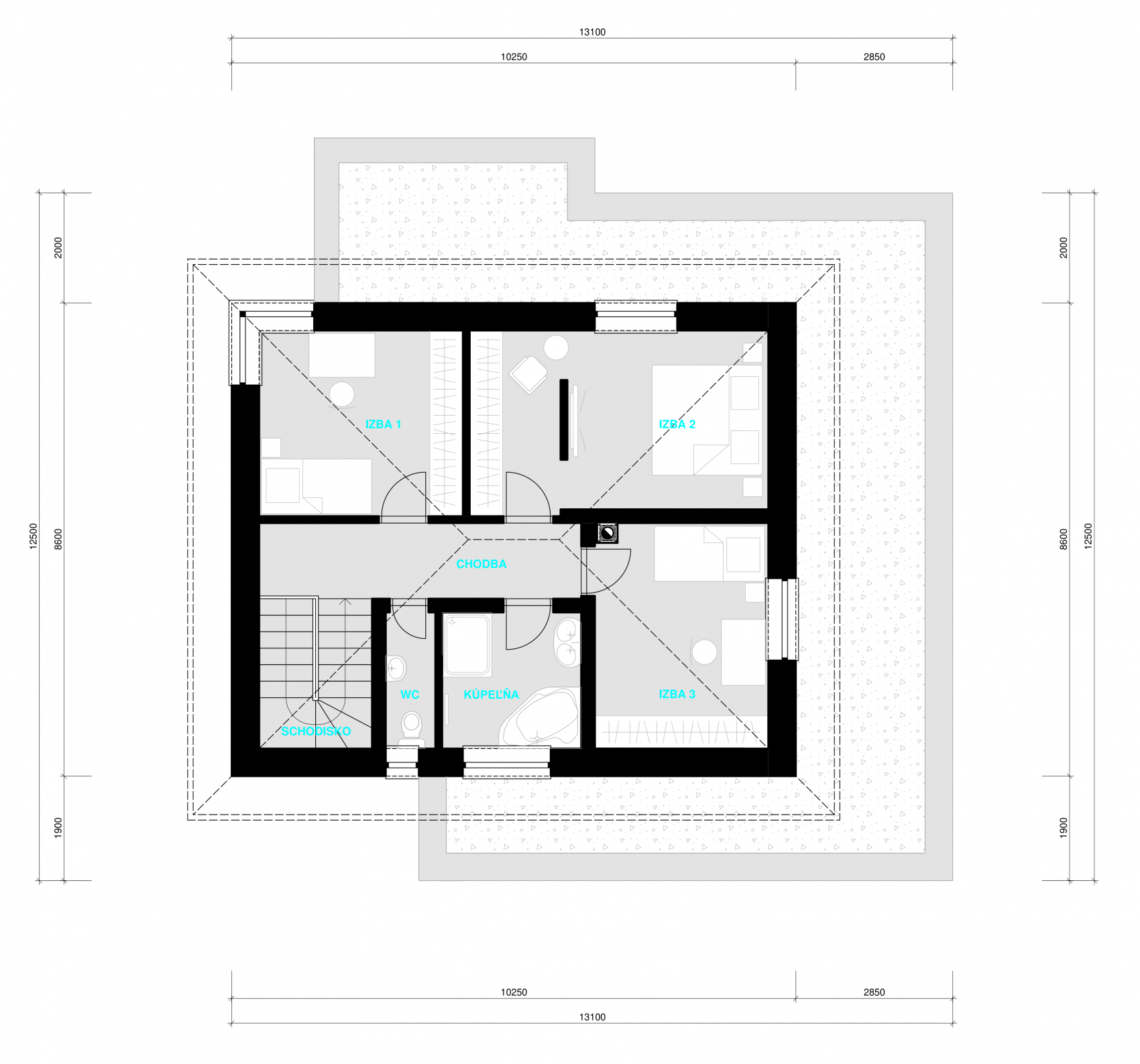 Vonkajšie rozmery obostavaného priestoru: