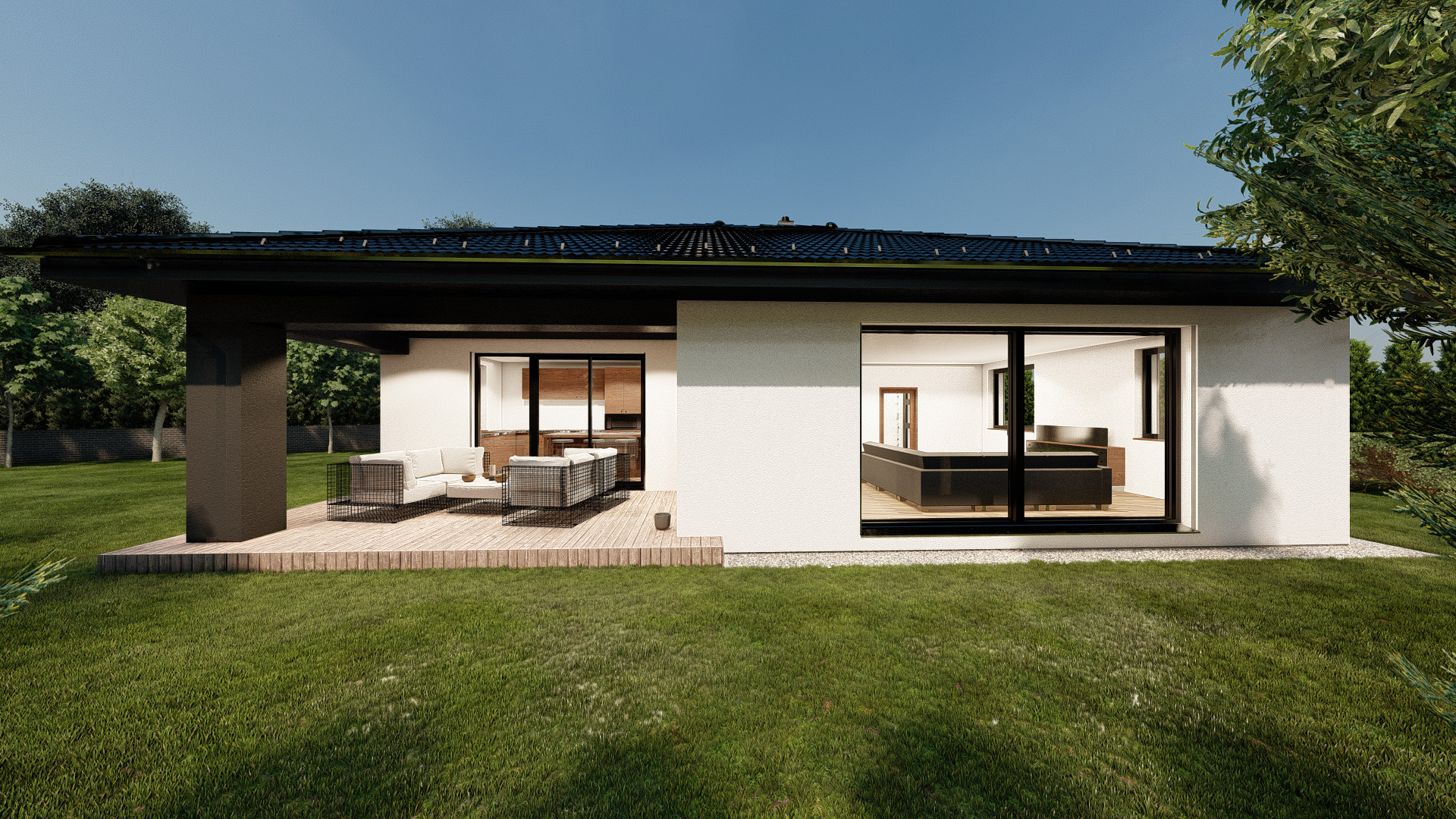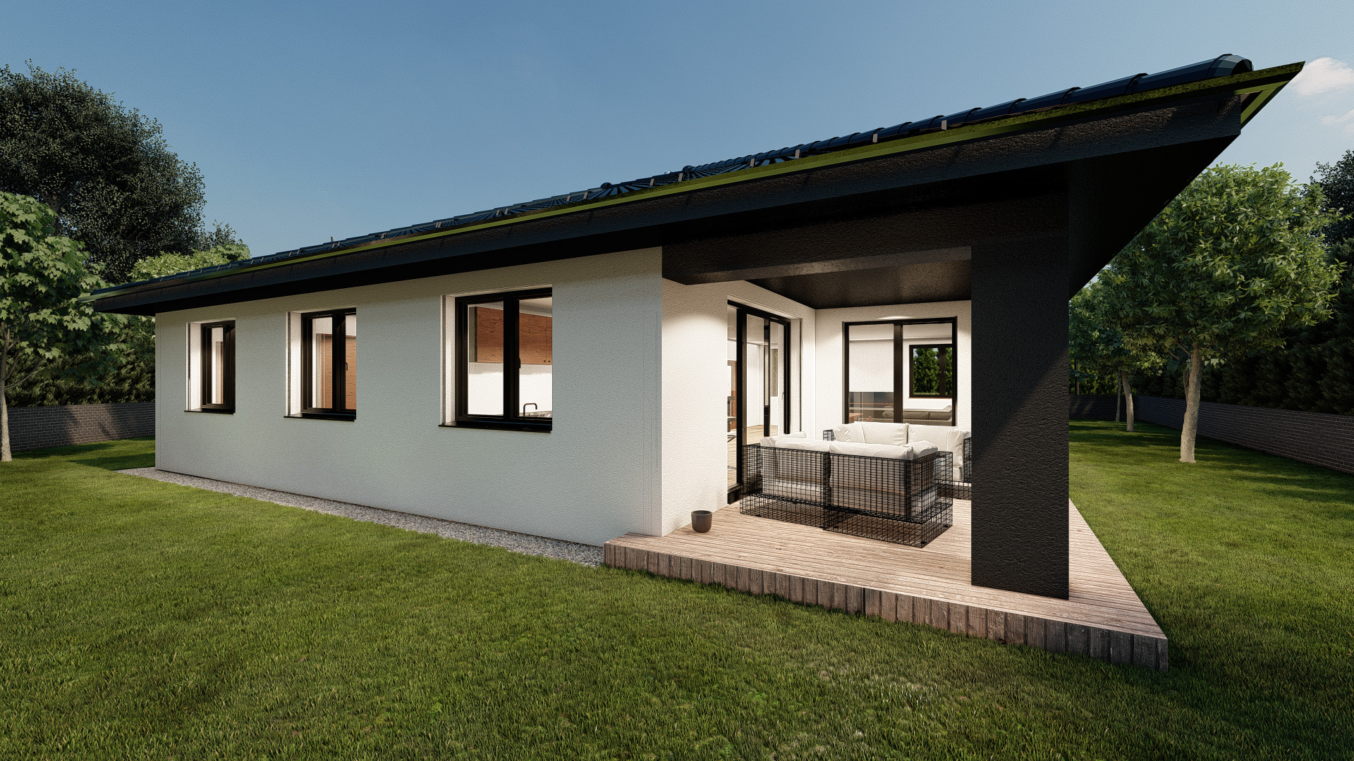 Rodinný dom Linea 14 ponúka približne 120 m2 podlahovej plochy, 4 prakticky riešené obytné miestnosti a veľkú terasu.