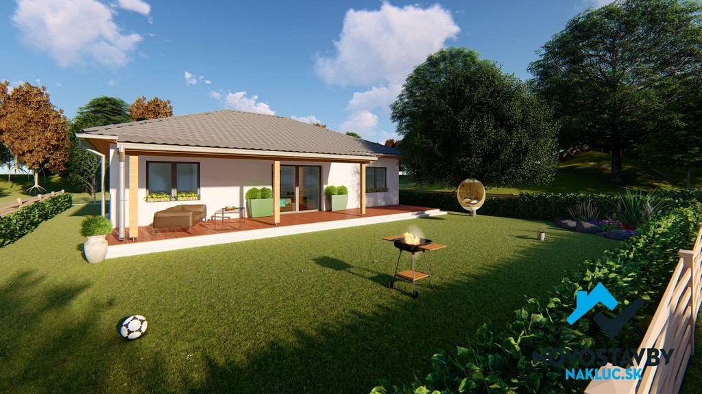 BUNGALOV SCENIC 5 je komfortný 5-izbový bungalov. Obývacia izba je prepojená s veľkou kuchyňou a praktickou komorou, nočná časť je oddelená v tichej zadnej časti domu, menšia izba môže slúžiť ako pracovňa alebo hosťovská. Celková úžitková plocha domu je príjemných 127 m2. Výhodou je veľká prestrešená vonkajšia terasa, ktorú si viete ľahko premeniť aj na zimnú záhradu a tým tento oddychový priestor využívať celoročne.